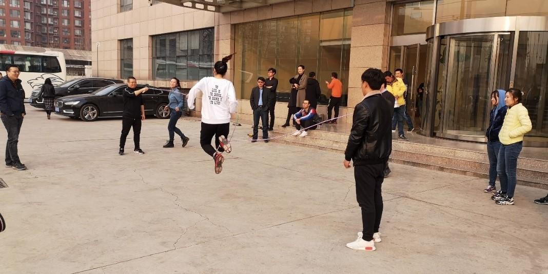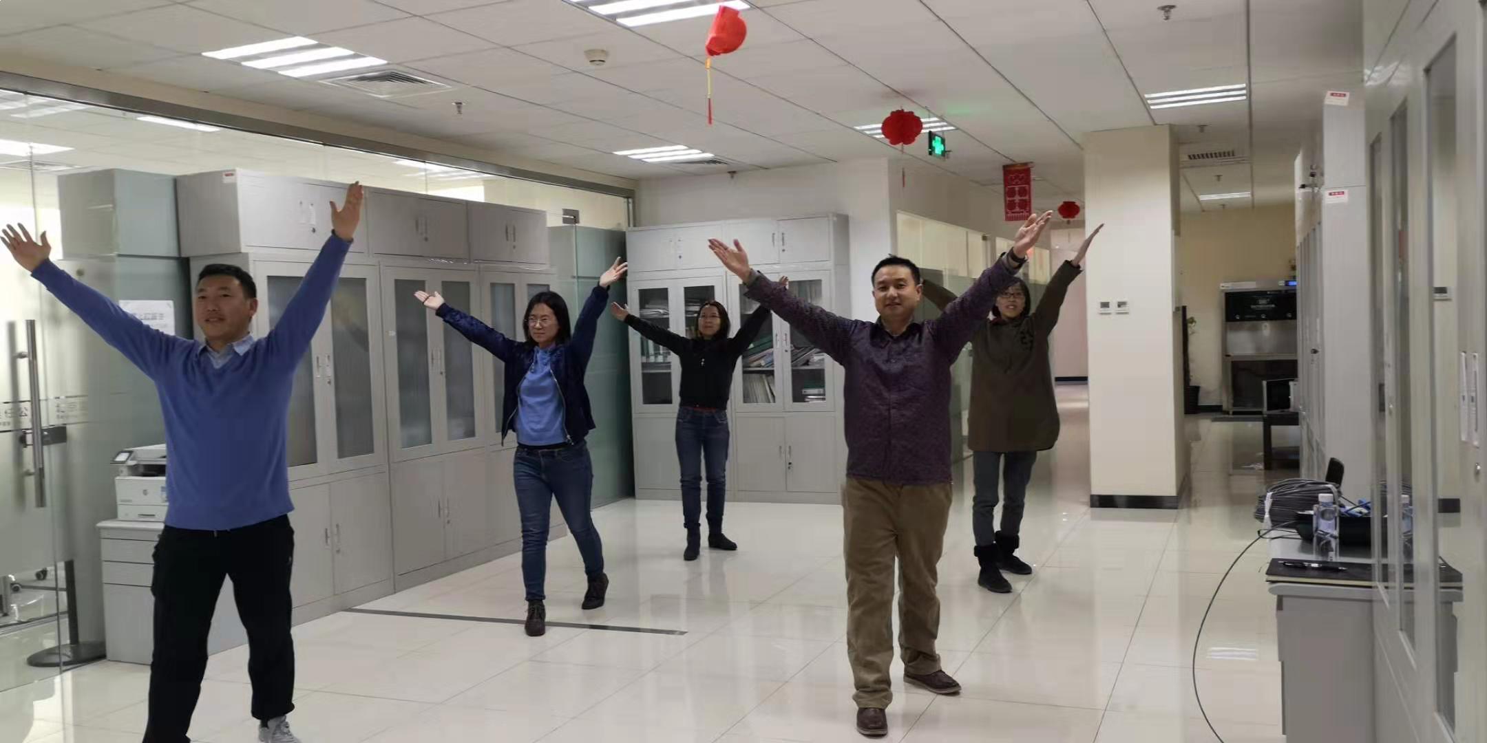 工作伊始~~~ 小伙伴們已經開始在工作之余,伴隨著耳熟能詳的第九套全國人民廣播體操的節奏釋放活力~~在有限的活動場地輕舞飛揚的踢毽子~~平板支撐~~