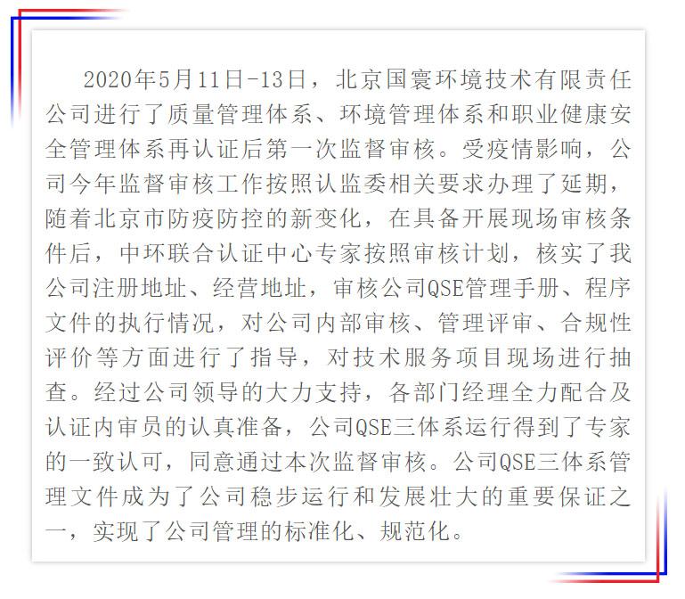 國寰公司通過三體系監(jiān)督審核