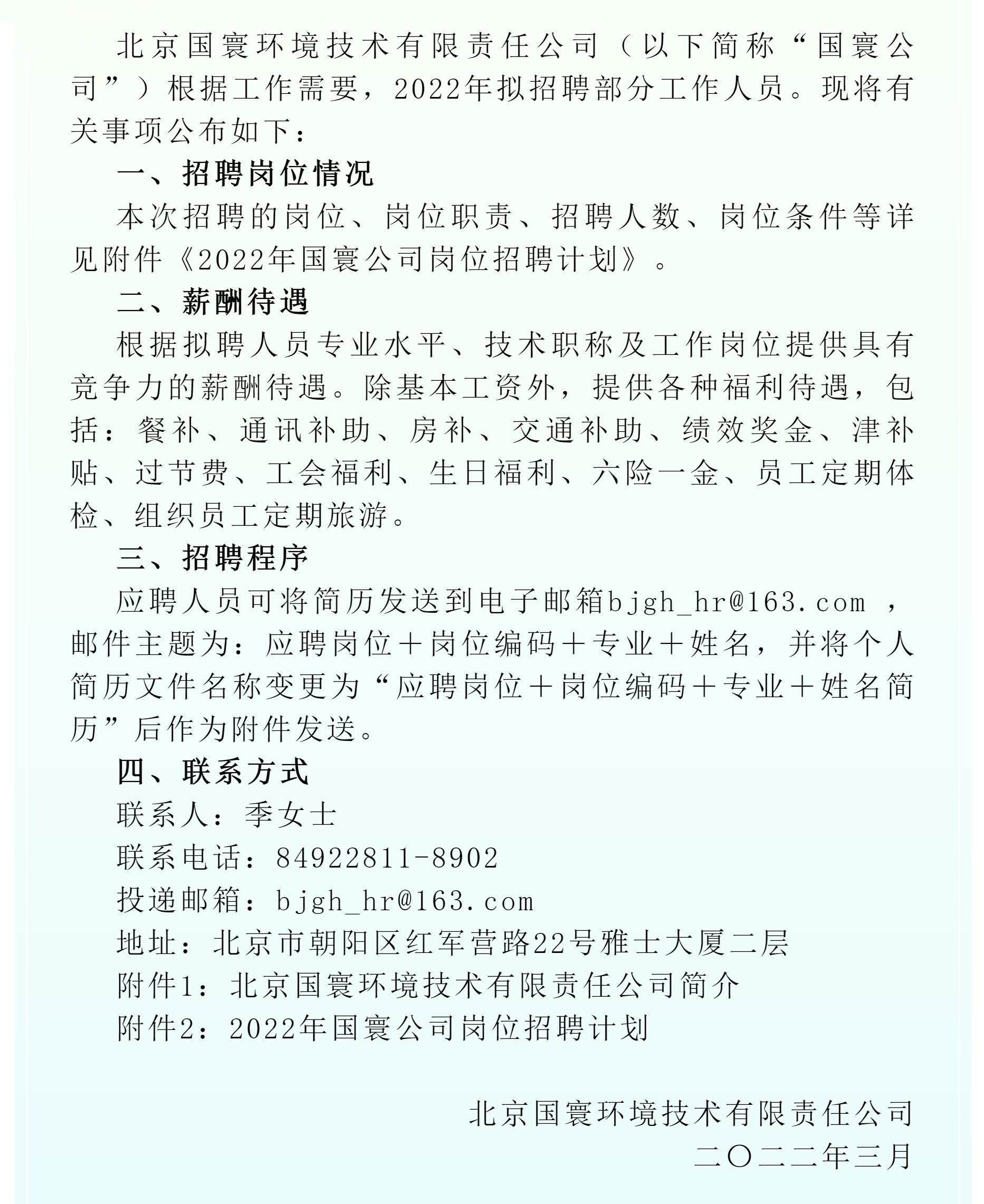 2022年北京國寰環境技術有限責任公司招聘啟事2022.3.9